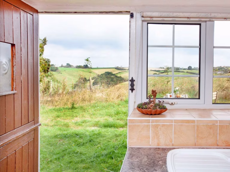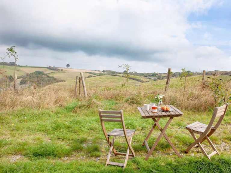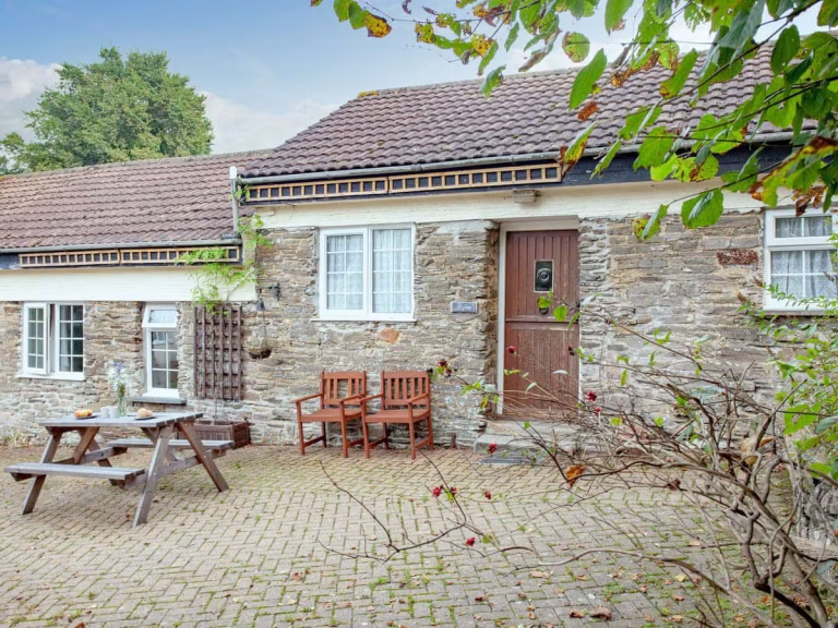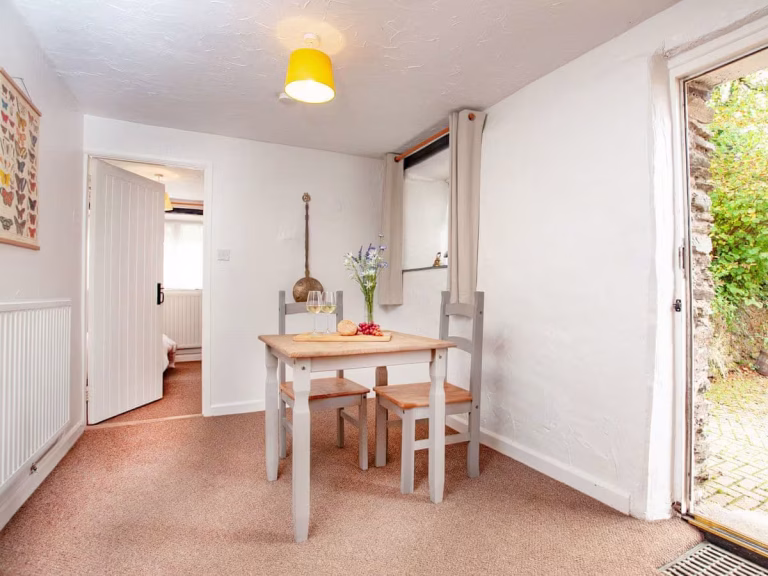 The Byre Cottage sleeps 2 in a double bedroom. It has an open plan living area and kitchen and a well appointed bathroom complete with shower and bath. From the backdoor and secluded seating area behind the cottage, there are stunning scenic views of the fields and valley below. The front of the cottage again offers outdoor seating and there is a spacious courtyard area perfect for alfresco dining.