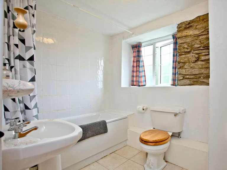 Gas central heating, gas, electricity, bed linen and Wi-Fi included. Towel hire, £5 per person. Welcome pack. Utility room with 2 coin-operated washing machines, 2 coin-operated tumble dryers and freezer (shared with other properties on-site). Courtyard with patio, sitting-out area and garden furniture. Landscaped grounds with children’s play area (shared with other cottages on-site). The coastal path passes close to the property and provides beautiful walks and views along the dramatic coastline. Each property has an allocated parking space, plus there is parking for a further 3 cars if needed. The local shop is a 5min drive and a beachside cafe/restaurant is just 15 min walk away.