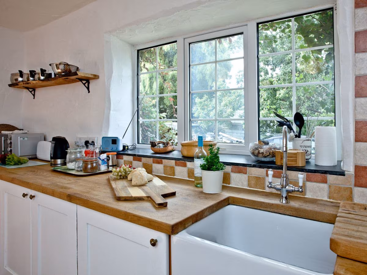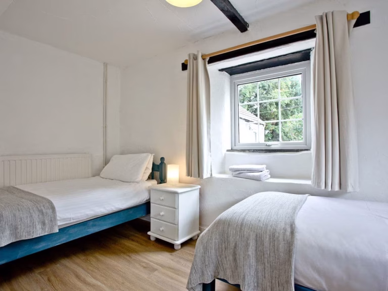 The Stables Cottage is comprised of two bedrooms: a double upstairs and two single beds downstairs. It has a separate small cosy lounge that opens onto a spacious open plan kitchen/diner. It has a bathroom with both a shower and bath and an outside seating area to catch the Cornish rays with a glass of wine.
